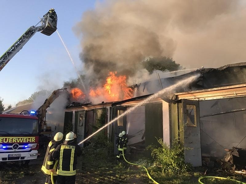 Gegen 23 Uhr war das Feuer nach Angaben der Polizei vorerst gelöscht. Gegen 2.30 allerdings entflammten einige Glutnester erneut - wieder mussten Feuerwehr und THW ausrücken, den glühenden Schutt auseinander ziehen und löschen. Dieser zweite, kleinere Einsatz verlief nach ersten Informationen unproblematisch.