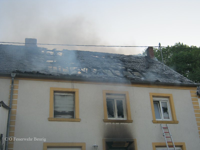 Am späten Nachmittag des gleichen Tages mussten die Feuerwehren dann erneut zu dem Anwesen ausrücken. Aus bisher ungeklärter Ursache hatte sich im Haus erneut ein Brand entwickelt, der sich schnell auf das ganze Haus ausbreitete. Zwar konnte die Feuerwehr ein Übergreifen auf Nachbargebäude verhindern, das Wohnhaus selbst war jedoch nicht mehr zu retten und brannte völlig aus. Personen wurden nicht verletzt.
