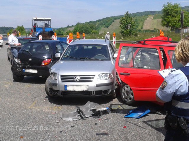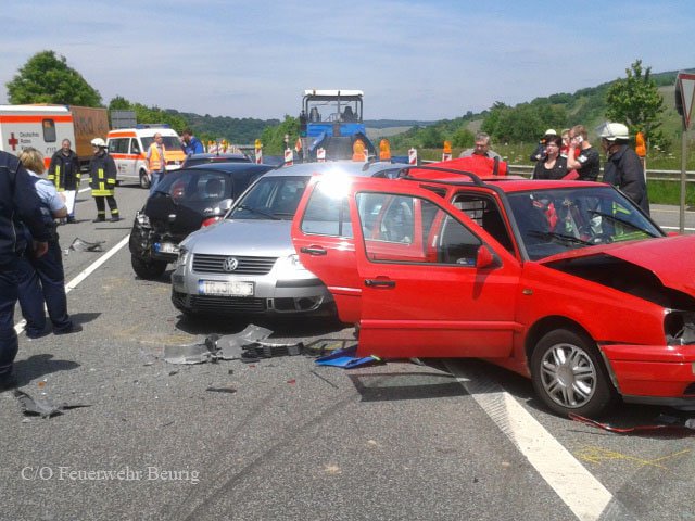 Neben den sechs Polizeibeamten der Polizeiinspektion Saarburg rückten auch 30 freiwillige Feuerwehrleute aus Saarburg, Beurig und Irsch zur Massenkarambolage aus. Nach dem Unfall musste die Polizei die B 51 von Saarburg in Richtung Ayl etwa eine Stunde lang sperren und den Verkehr über Beurig umleiten.