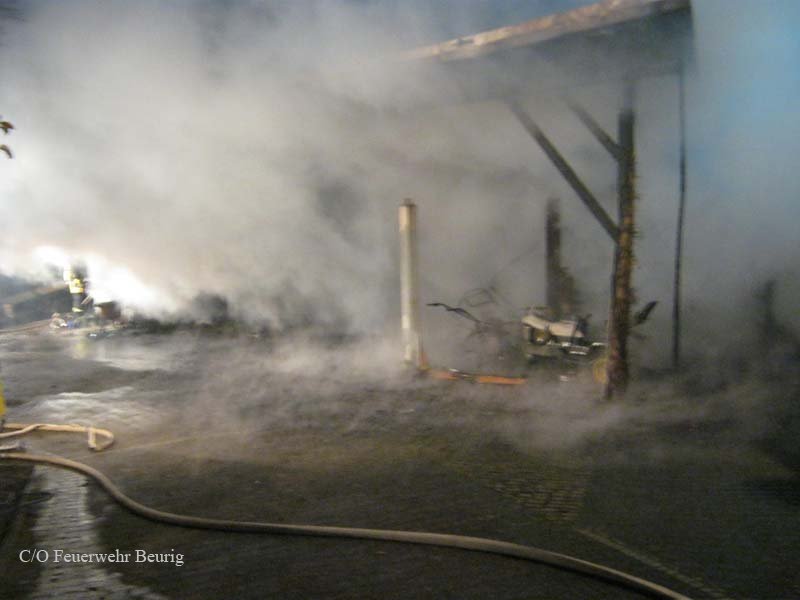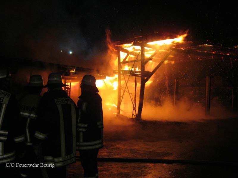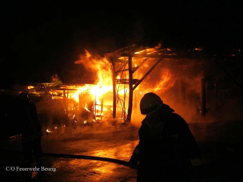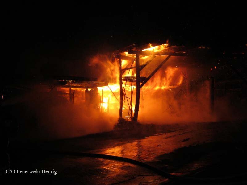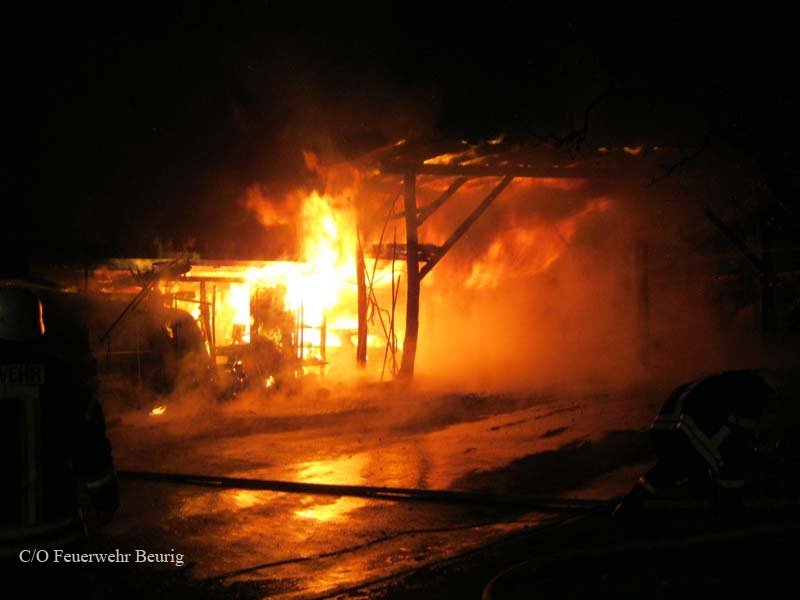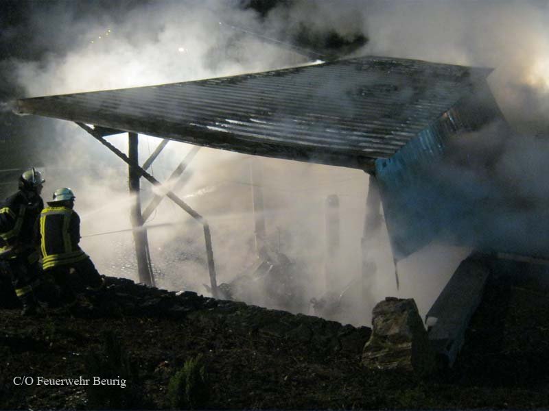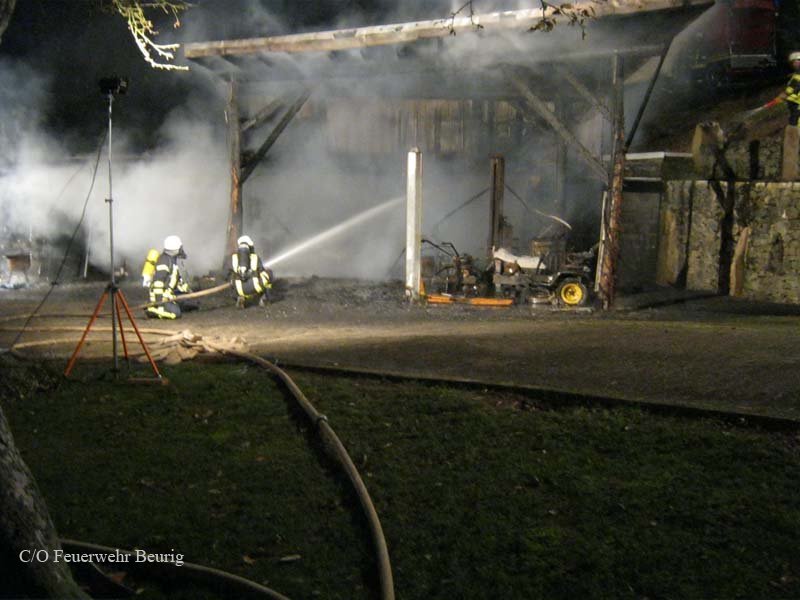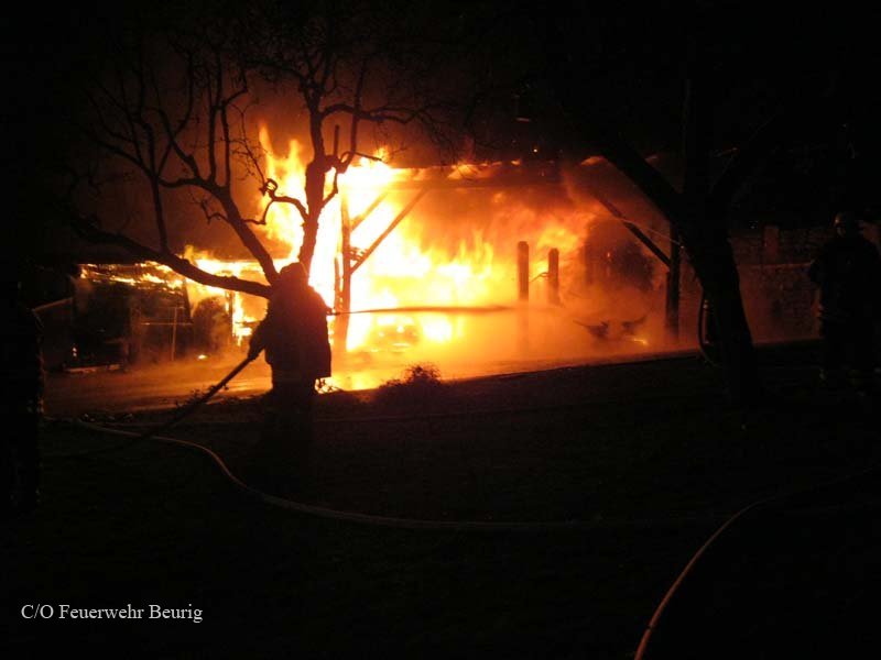 Gegen 17:50 Uhr wurde Großalarm in der Verbandsgemeinde Saarburg ausgelöst. Ein Dachstuhlbrand an einem Wohngebäude wurde gemeldet. Als die Ayler Ortswehr am Brandort eintraf, machten sie gleich Meldung daß es sich um einen Vollbrand eines Schuppens und nicht um das Wohnhaus handelt. Trotz des massiven Feuerwehraufgebots konnte der Schuppen nicht mehr gerettet werden. Alarmiert und im Einsatz waren die Feuerwehren aus Ayl, Ayl-Biebelhausen, Schoden, Mannebach, Saarburg, Konz und Beurig.