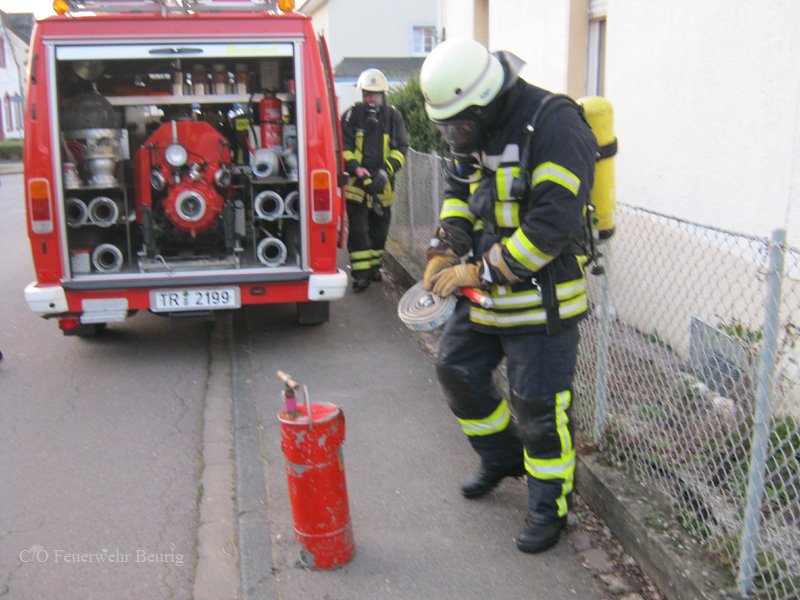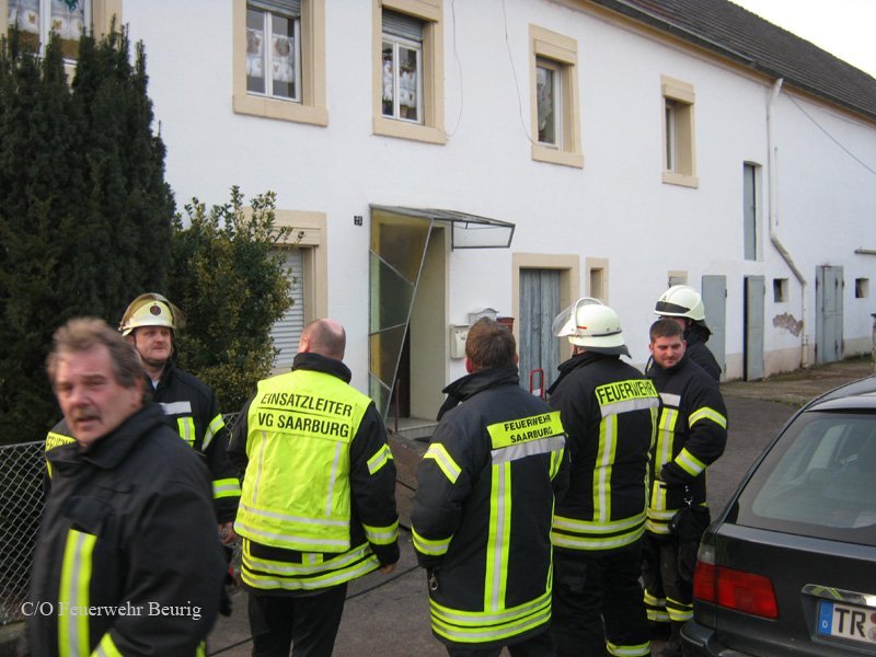 Um 17:35 Uhr wurden die Feuerwehren aus Saarburg, Serrig, Irsch und Beurig zu einem Gebäudebrand in die Klosterstraße in Beurig alarmiert. Die Bewohner hatten die Feuerwehr alarmiert und angegeben daß sich noch Personen im Gebäude befinden. Beim Eintreffen an der Einsatzstelle hatten zwei der Bewohner den Brand bereits weitestgehend gelöscht. Hierbei zogen sie sich eine leichte Rauchvergiftung zu und wurden vorsorglich vom DRK in Krankenhaus eingeliefert. Unter Atemschutz wurde das restliche Feuer gelöscht und die Wohnung durchlüftet.