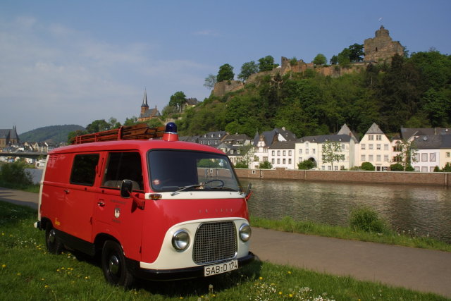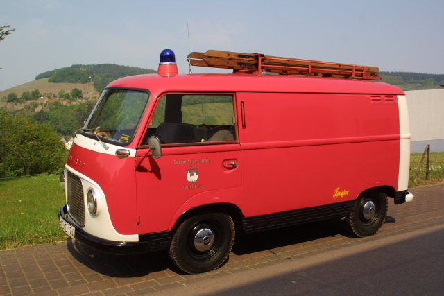 Unser Oldtimer, ein Ford FK 1250 von 1960. Dieses Fahrzeug wird nur noch zu besonderen Anlässen benuzt. Es ist Eigentum des Förderverein der Feuerwehr Beurig. Der Kosename des Fahrzeugs rührt aus seiner etwas ruckeligen Anfahrweise. Es ist eins der letzten Fahrzeuge mit dem Stempel des ehemaligen Landratsamt Saarburg und dem "SAB", für Saarburg, im Nummernschild.